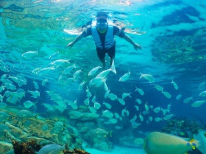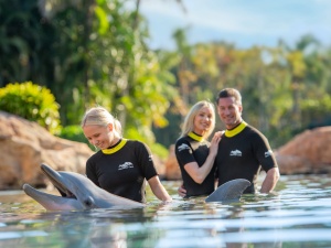 Welcome to an exquisite tropical island paradise. Discovery Cove offers the unique opportunity to swim and play with a beautiful Atlantic bottlenose dolphin, snorkel amongst tropical fish, glide with rays and relax...