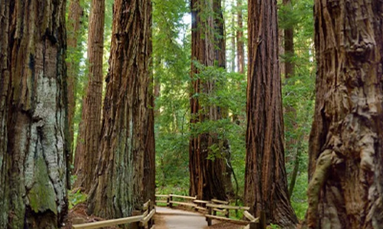 Stroll through the walking trails in tranquil Muir Woods to see California's coastal redwoods, the tallest living things on earth. Muir Woods is one of the last remaining stands of old-growth coastal redwood forest, sustained by temperate marine fog. You'll see redwoods that are over 800 years old, having grown from tiny seeds to heights of up to 258 feet (79 m).