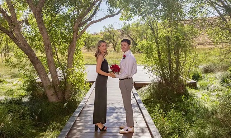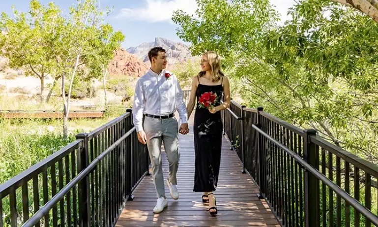 From a vantage point that overlooks the Red Rock Valley, you will exchange your marriage vows amidst a protected environment that offers a pristine backdrop for wedding photography. We recommend morning or late afternoon for this breathtaking matrimonial experience!