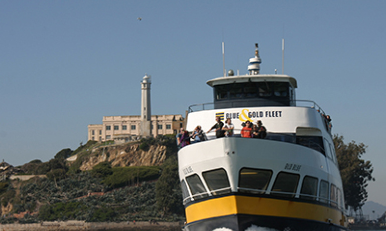 Sail underneath the Golden Gate Bridge and see Alcatraz up close