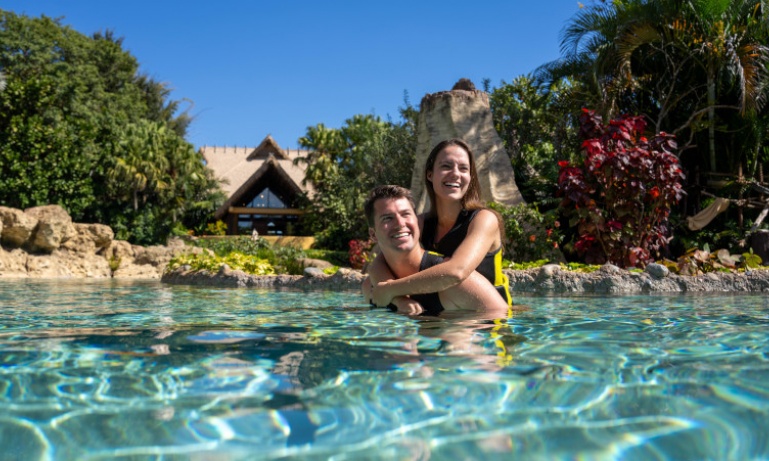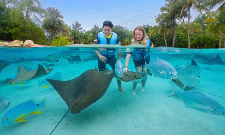 Relax and unwind on our white sand beaches and experience incredible animal encounters around each corner throughout your day at Discovery Cove. Glide across the lagoon with a beautiful bottlenose dolphin or explore a lush landscape of rocky lagoons, waterfalls and pristine sandy beaches at Discovery Cove. This all-inclusive oasis is a fantastic mix of tranquillity and exhilaration. You’ll feel as if you’ve stumbled upon an undiscovered tropical island. Move at your own pace through this sun-soaked oasis, doing as much as you want, or as little as you’d like.