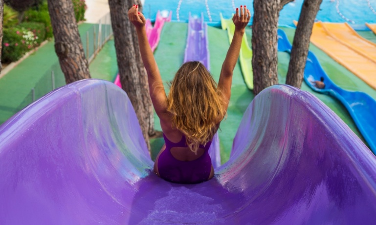 Get an adrenaline rush sliding down one of the slides at the Kamikazes, an 18-meter slide only for the bravest. Take a race with your friends on the Megatous or tackle the most slippery turns of Illa Fantasia at the Zigs-zags.