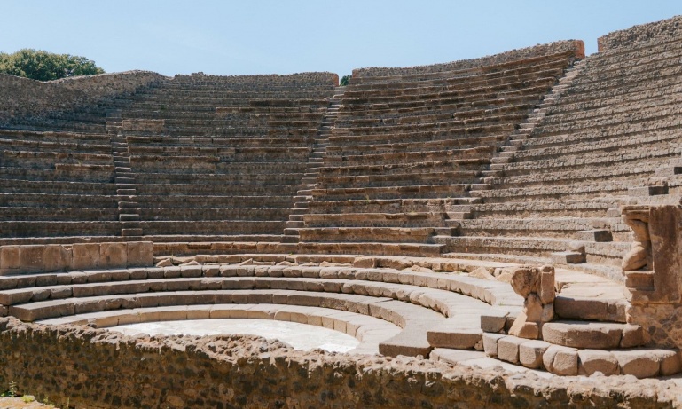 From there, your guide will take you along Pompeii’s main thoroughfare, and everyday life before the eruption comes into focus. Stops at a bakery, a fast-food counter, and an early marketplace reveal how residents bought food, ran businesses, and moved through the city on a daily basis. And the Roman theater and bathhouse are windows into leisure and social life in ancient Pompeii for both the elite and everyday citizens.