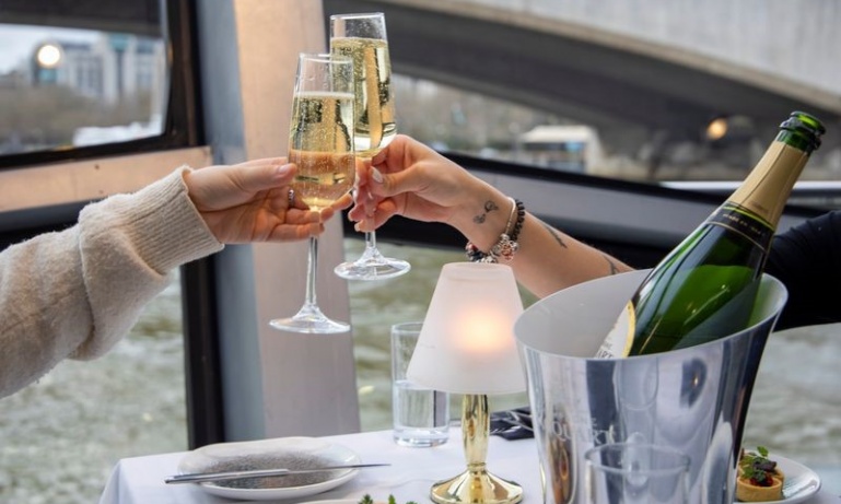 You’ll be greeted with a glass of fizz as you step aboard, then enjoy a four-course meal of traditional British flavours aboard the Millennium Diamond, with breathtaking views of landmarks like the Tower Bridge, the Shard, and the Houses of Parliament. As night falls, you’ll be surrounded by the glittering lights of the capital. Then dance the night away as our live performer plays popular hits or enjoy the tranquil atmosphere of the open upper deck with someone special.