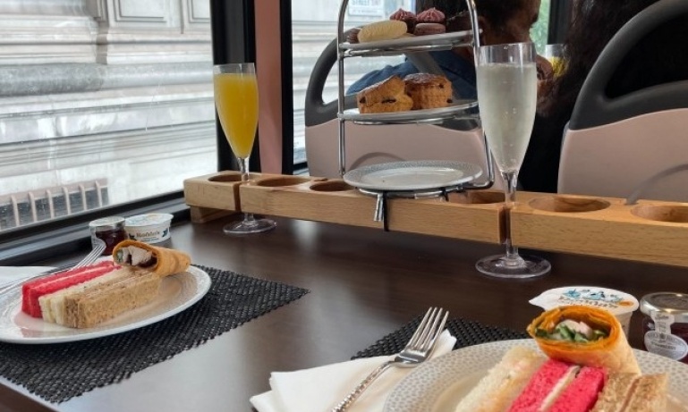 You can choose a Vegetarian, Vegan, Gluten-free or Standard menu. There are also 3 different seating options for you to choose from: upper deck, lower deck or premium upper deck seating. Premium upper deck seating means you’ll be right at the front of the bus with the best views possible as you journey through Windsor.