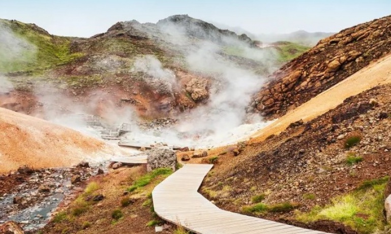 Next, head to Fagradalsfjall Volcano, one of the youngest volcanoes in Iceland, surrounded by expansive, still-warm lava fields. Here, you'll hike to a scenic viewpoint, crossing terrain that looks like something from another planet to get close to one of Iceland’s newest lava fields.